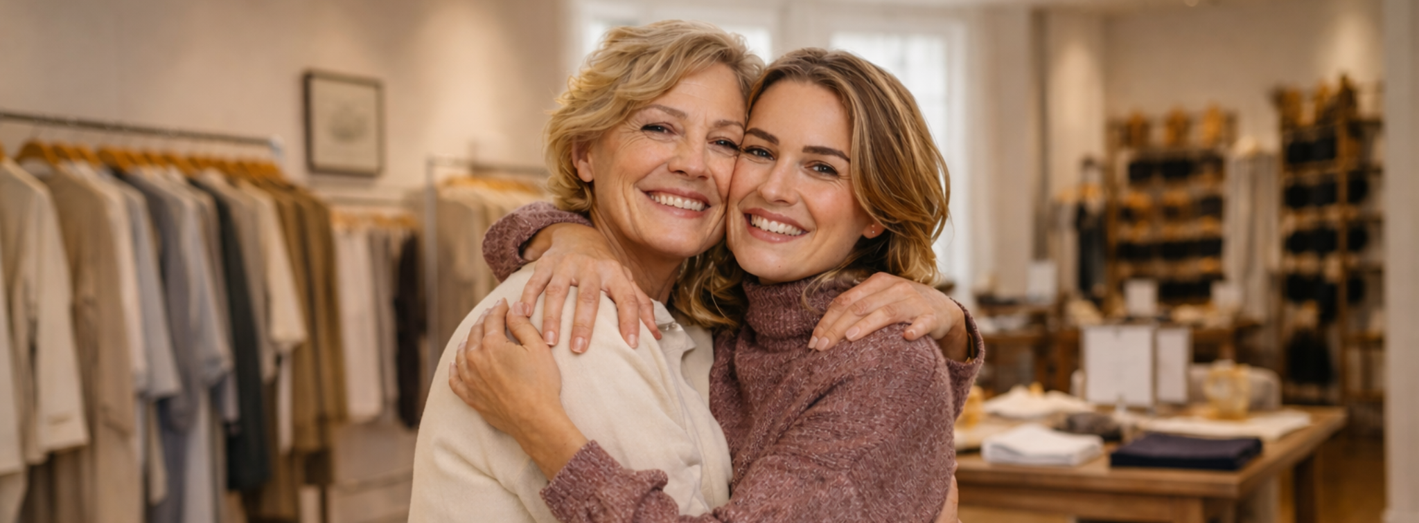 Now, more than 25 years later, they run their boutique with countless happy clients and inspiring projects. Their mission has always been clear: to stay ahead of new trends, deliver high-quality pieces, and offer a truly personal approach. For Audrey and Amy, it's about more than fashion — it's about making every customer feel seen, valued, and stylish in their own unique way.